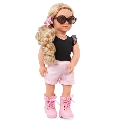 - 18-inch doll Stella: bright blue eyes that open and close with long, wavy, brushable blonde hair that’s fun to style!