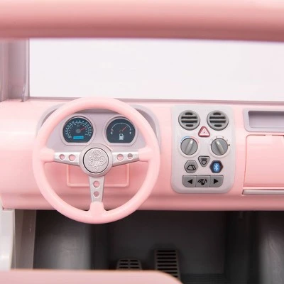 - Fun Features: functional lights and wipers, a surfboard, a removable roof rack, and comfortably fits 2 Our Generation dolls with their pet!